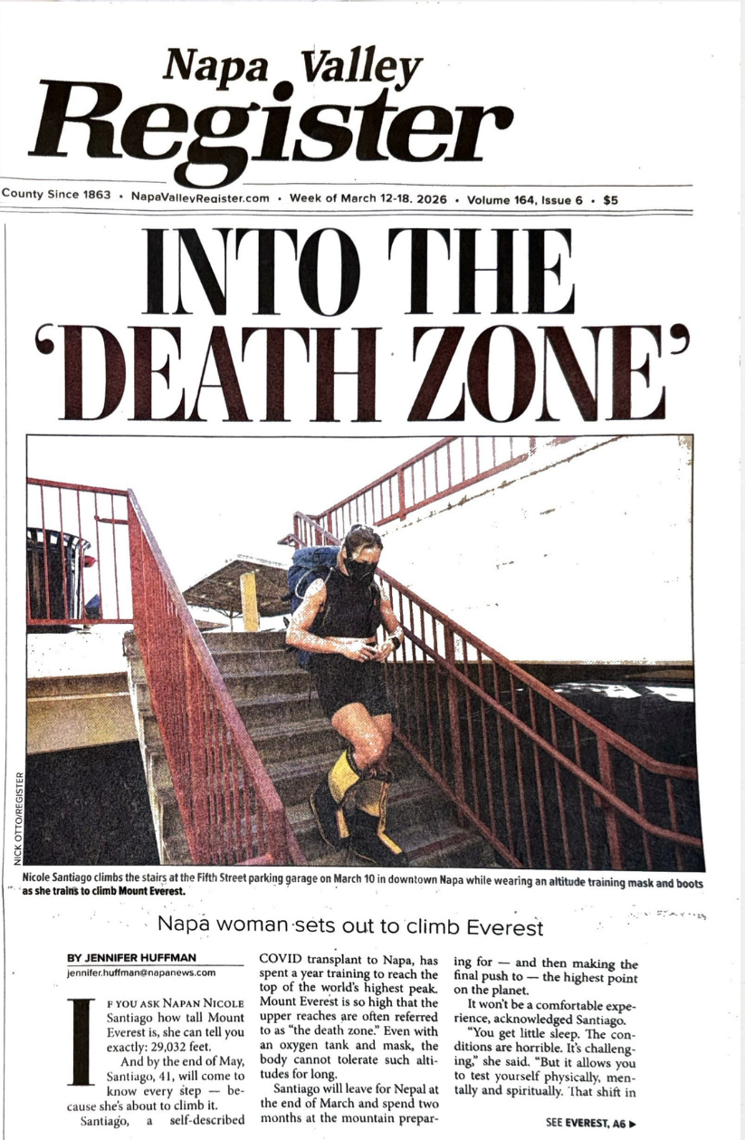 “NAPA WOMAN SETS OUT TO CLIMB EVEREST.”
